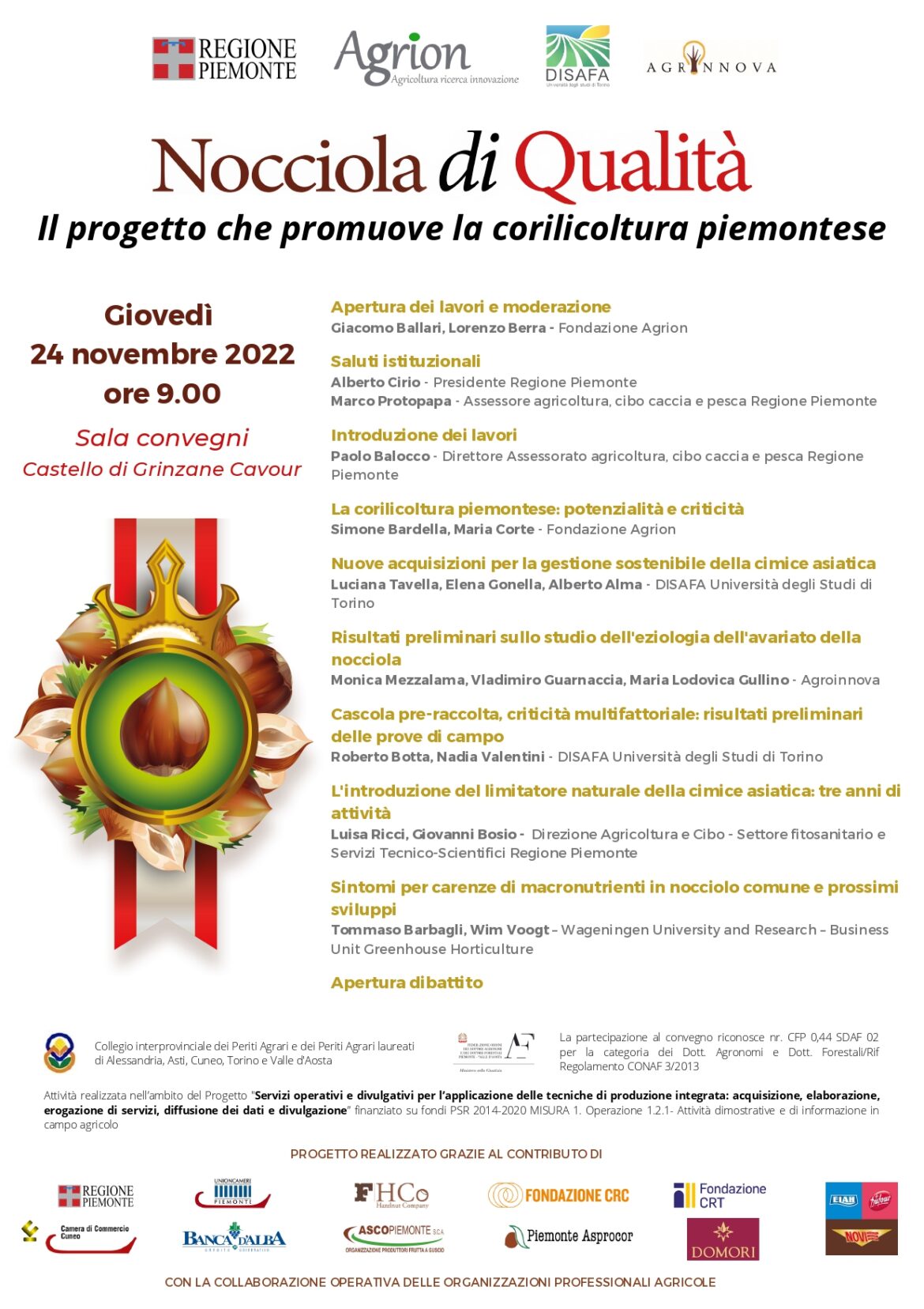 Si terrà giovedì 24 novembre 2022 il convegno relativo al progetto “Nocciola di Qualità”, organizzato