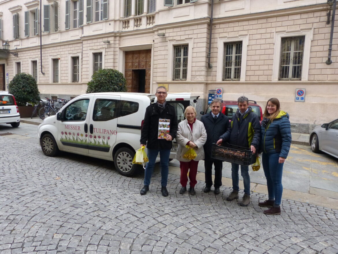 Nella giornata di oggi, 28 novembre, Consolata Pralormo Soleri, l’ideatrice della grande manifestazione floreale Messer Tulipano che da oltre 20 anni si svolge nel parco del Castello di Pralormo (www.castellodipralormo.com), ha donato alla Città di Cuneo più di 3.000 bulbi di tulipano, pronti ad annunciare la bella stagione con la loro splendida fioritura. I bulbi saranno piantati in diverse zone della città: accanto al Municipio, nel giardino del Santuario degli Angeli, nel Piazzale della Libertà, in piazza Galimberti, nel Parco della Resistenza, in via Roma e Contrada Mondovì (gli spazi saranno riconoscibili attraverso il posizionamento di alcuni cartelli plastificati di misura 30x40cm nei vasi e nelle aiuole. I cartelli avranno scritto ‘’Tulipani omaggiati dal Castello di Pralormo per la città di Cuneo. Messer Tulipano vi aspetta per ammirarne più di 100.000 al Castello di Pralormo’’).