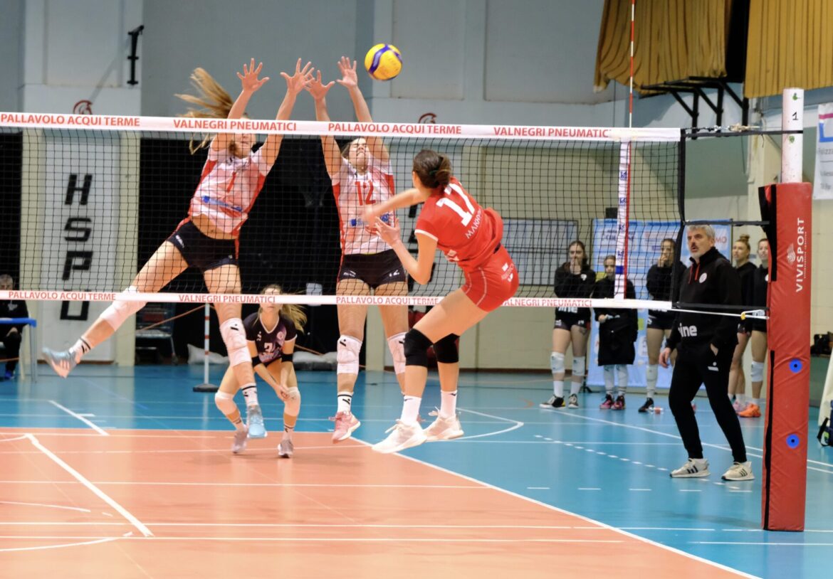 Ci sono sconfitte che pesano davvero molto e quella con Libellula CRS Banca Bra è una di queste. Un set combattuto, bello, con un finale mozzafiato e poi tre set senza giocare con un divario abissale. Così Bra, agevolmente, ottiene la sua prima vittoria stagionale ed il sorpasso in classifica. La peggior partita della stagione, fino ad ora, per le ragazze guidate da Ivano Marenco. Partenza in salita per le acquesi che si ritrovano subito 2/7, ma, dopo il pareggio sfiorato da Lombardi, ci pensano Scardigli e Mirabelli a rimettersi alla pari. Botta e risposta e poi Lombardi e Bondarenko scavalcano. Le cuneesi, però, con quattro colpi si riprendono il vantaggio (11/13), allungando poi di altre tre lunghezze le distanze sul 13/18. Bondarenko e Lombardi cercano di rimanere agganciate, recuperano una parte del terreno perso, ma Bra tiene botta. Acqui insiste e sul 20/23 Lombardi, un errore avversario e Bondarenko rimettono ancora una volta la situazione in equilibrio. Libellula colpisce ancora, ma Bondarenko ribalta. Poi, dopo un finale rocambolesco, a suon di rimonte, difese difese all’ultimo colpo, sul 27/27, due errori delle ospiti regalano la prima frazione all’Arredo Frigo Valnegri che poi non rientra più in campo. Dopodiché la. La seconda frazione parte già male: subito sotto 2/8. Alternando alti e bassi faticano a mantenersi al passo, andando definitivamente in tilt sul 13/16 quando la formazione cuneese con un solo break vola sino alla chiusura. Nel terzo set la reazione sperata non arriva ed il punteggio è il medesimo. Nella quarta frazione, dopo il raddoppio che ha fatto seguito al primo punto iniziale avversario, riparte la stessa solfa dei due parziali precedenti, con il divario che in poco tempo si fa già pesantissimo (8/17). Nonostante qualche colpo che lasciasse ben sperare, due setpoint annullati da Ruggiero e Fabbrini, il divario finale è di nove punti e, sotto gli occhi sbigottiti di tutti, si chiude il sipario su una delle più brutte prestazioni di cui si abbia ricordo.