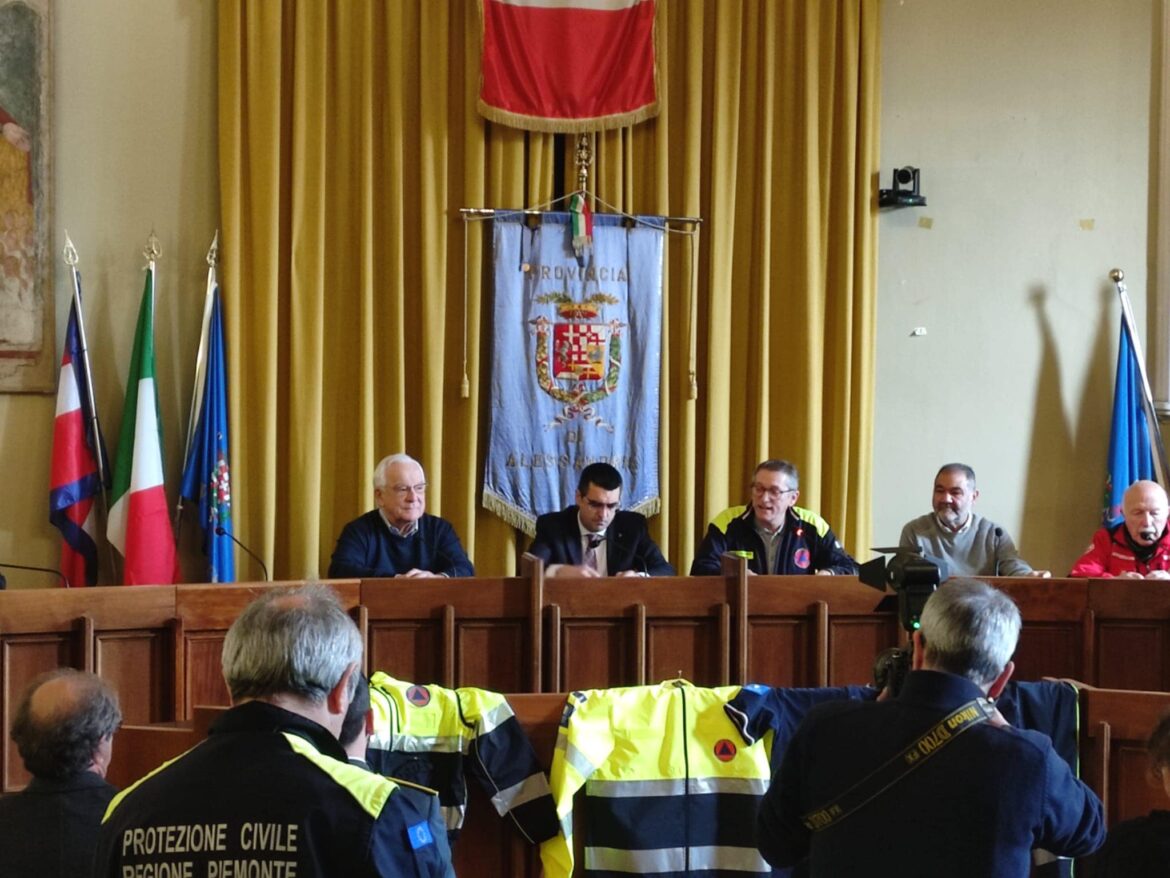 Sabato mattina a palazzo Ghilini, sede della Provincia e Prefettura di Alessandria si è svolta una semplice ma significativa cerimonia alla presenza di tante autorità , dal Capo di Gabinetto della Prefettura, alla Questura a tutti i comandi provinciali, ai sindaci o loro rappresentanti dei 18 C.O.M Centri operativi misti) che hanno il compito di coordinare le emergenze in caso di calamità. La cerimonia di consegna delle divise ai 22 nuovi volontari di Protezione Civile del neo costituito gruppo provinciale della Provincia di Alessandria; il primo costituito in Piemonte. Questo gruppo è suddiviso in due unità operative (nuclei): gli addetti alla Sala Operativa e i Reporter Digitali Volontari. Le divise sono state acquistate grazie al fondamentale contributo della Fondazione Cassa di Risparmio di Alessandria.