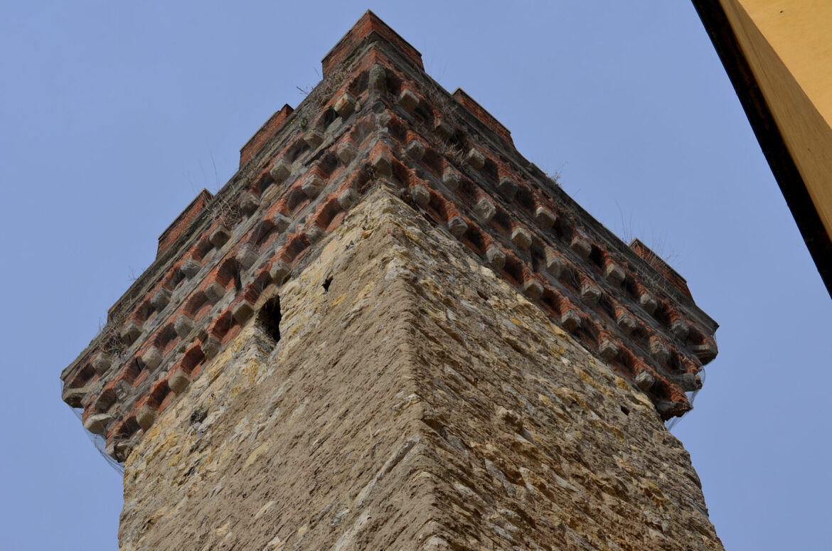 Un restauro della parte terminale nel 1926 aggiunse la merlatura guelfa.