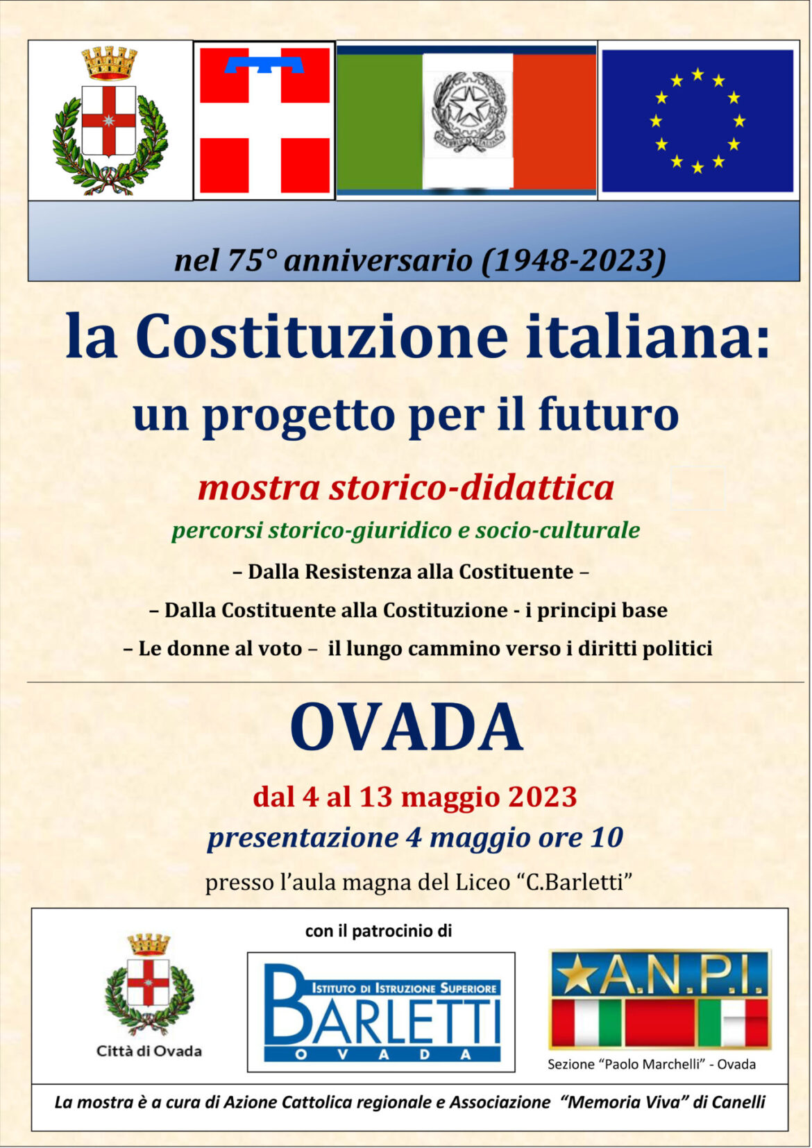 Comune di Ovada), l’integrazione europea (bandiera dell’Unione Europea); – i