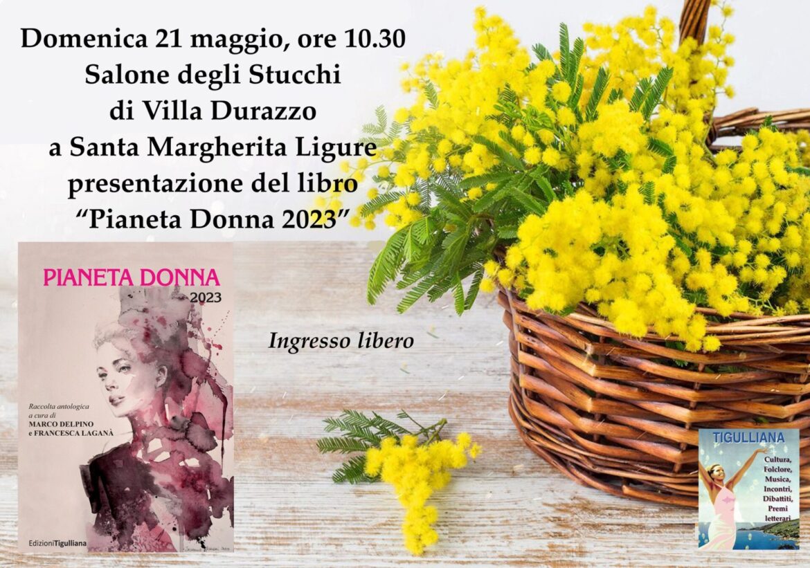 Domenica 21 maggio, a partire dalle ore 10.30, nel Salone degli Stucchi di Villa Durazzo a Santa Margherita Ligure, si svolgerà la presentazione del libro “Pianeta Donna 2023” (con premiazione di alcuni Autori) e la presentazione di altre pubblicazioni edite dalla “Tigulliana” nell’ambito del Premio Letterario Internazionale “S. Margherita Ligure”.