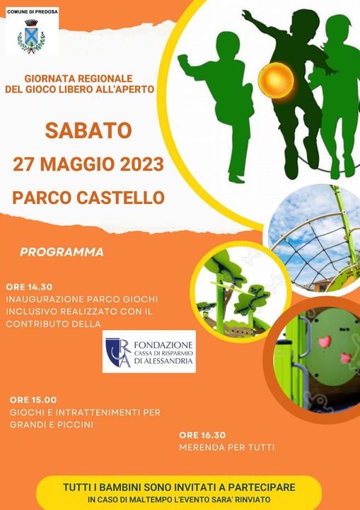 Sabato alle 14.30 iniziano gli eventi organizzati dal Comune di Predosa in occasione della Giornata regionale del gioco libero all’aperto.