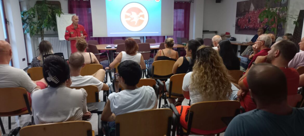 Nell’ambito del programma formativo rivolto ai operatori del soccorso della Croce Verde di Alessandria ha avuto luogo martedì 18 luglio un incontro con il Reparto volo Piemonte vigili del fuoco sul corretto approccio con l’aereomobile di soccorso. Abitualmente i volontari della Croce verde operano con elisoccorso del 118 ma potrebbe accadere che in scenari complessi gli operatori di soccorso a terra debbano collaborare con elicottero dei vigili del fuoco soprattutto in aree complesse o in attivita di protezione civile. Infatti la sinergia sugli scenari di soccorso e di emergenza e’ fondamentale come ha affermato il comandante pilota Giorgio Pieri. Presente all’incontro anche ing Ganci e il capo squadra Appiani del comando provinciale dei vigili del fuoco di Alessandria. L’aula didattica della Croce Verde, attenta e numerosa ha approfondito molte tematiche legate alla collaborazione tra gli esperti del soccorso tecnico urgente e il personale volontario e professionista della Croce Verde. Per il Comandante Pieri e’ stato anche un ritorno alle origini,in quanto fu volontario della croce verde alessandrina.