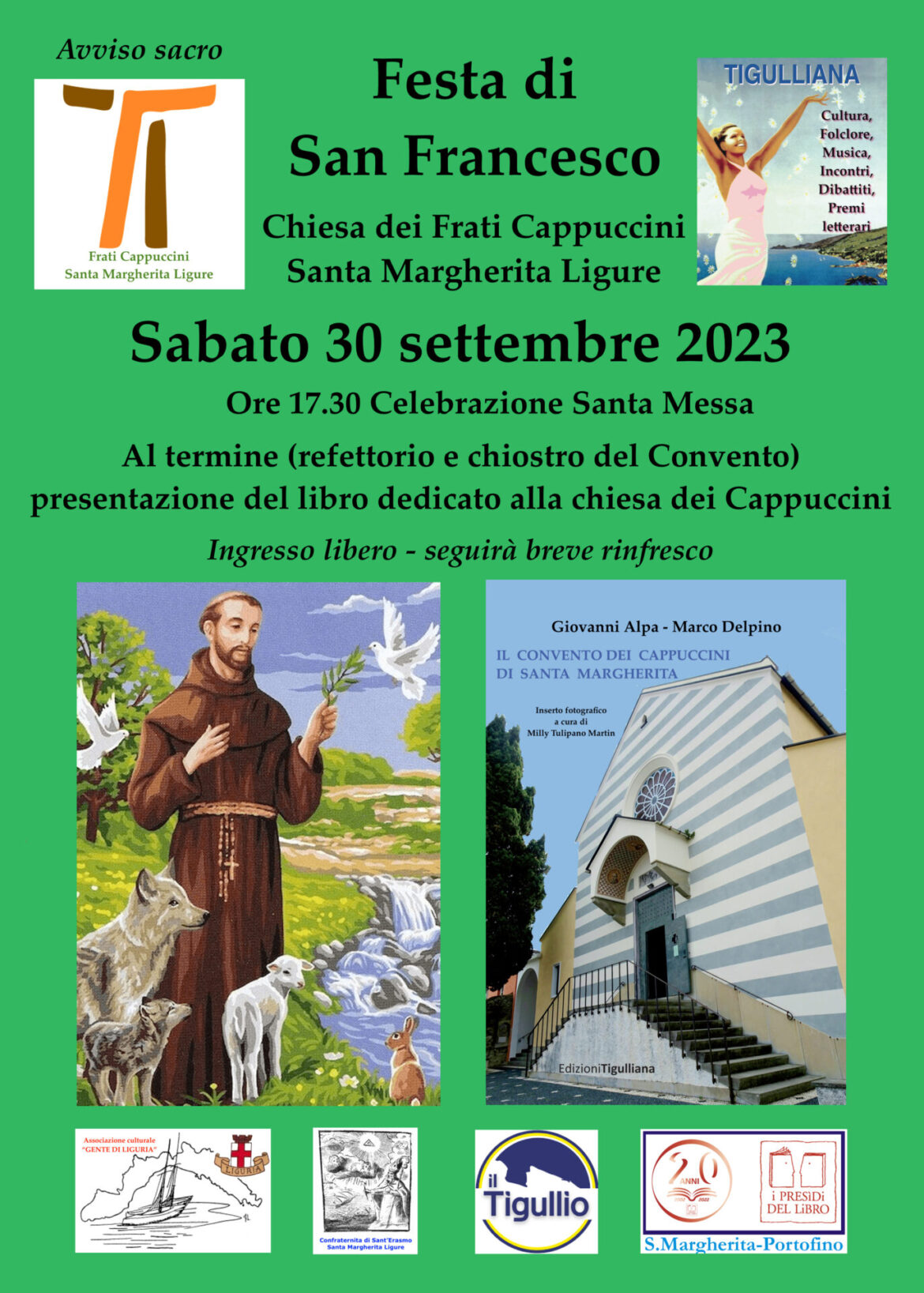 L’iniziativa, promossa dalla “Tigulliana” e dal Convento dei Cappuccini, ha avuto il patrocinio dell’Arciconfraternita di Sant’Erasmo, dell’associazione “Gente di Liguria”, del gruppo “Il Tigullio” e del “Presidio del Libro di S. Margherita e Portofino”.