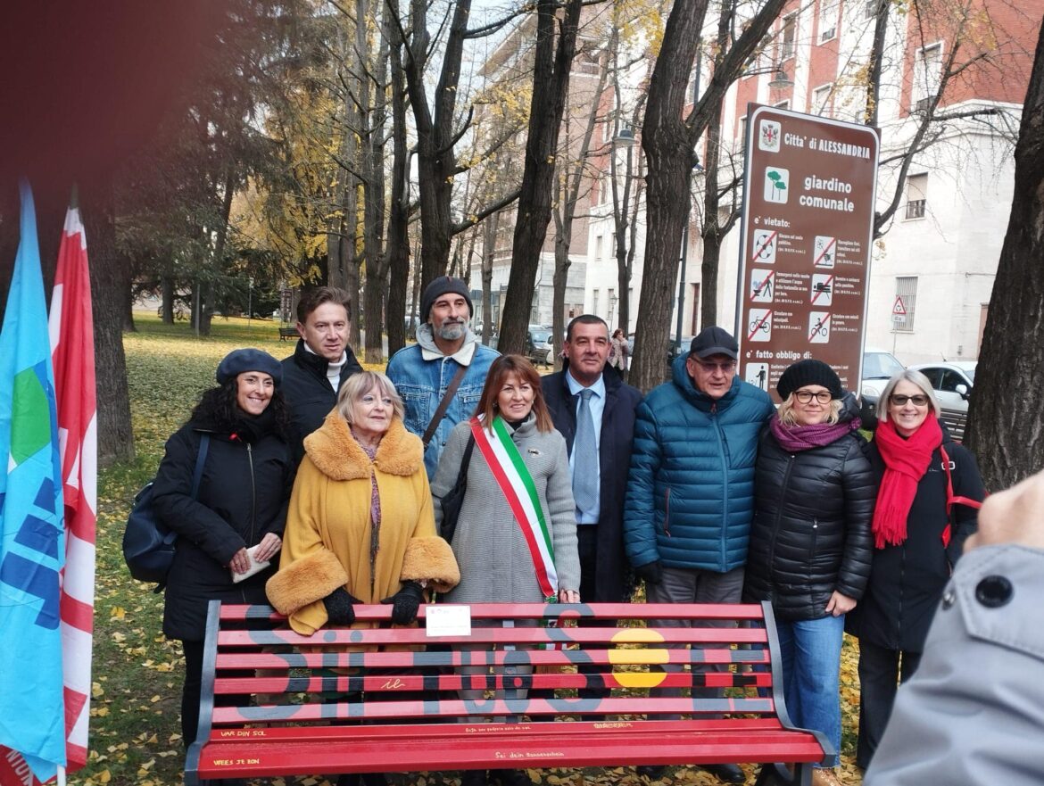 Alla cerimonia hanno preso parte il vice sindaco di Alessandria, Marica Barrera, esponenti dei sindacati Cgil, Cisl e Uil, promotori dell’iniziativa e proponenti del progetto “Una panchina per dire: NO alla violenza di genere” rivolto alle classi quarte e quinte delle scuole cittadine.  Erano anche presenti due rappresentante dell’associazione Medea e il dirigente scolastico dell’Istituto Vinci Fermi Nervi, Giuseppe Ferina, istituto coinvolto nel progetto.
