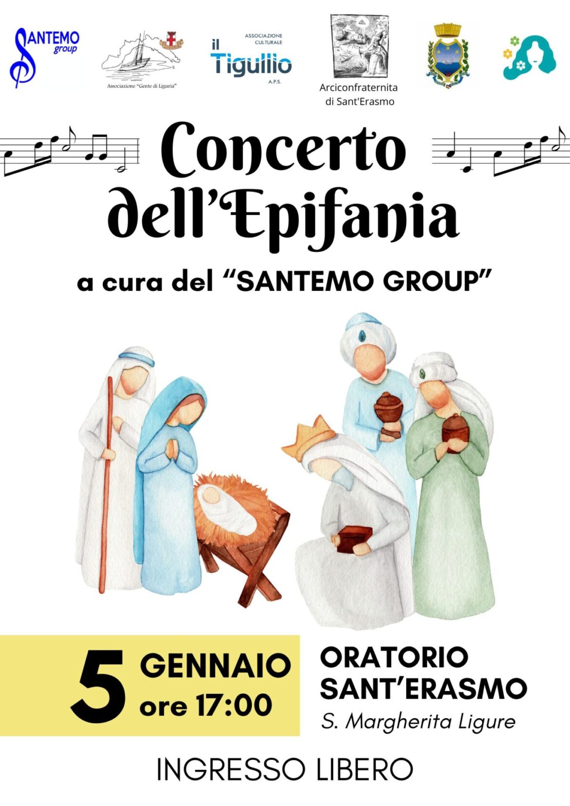 Concerto dell’Epifania a cura del “Santemo Group” presso l’oratorio di Sant’Erasmo in Santa Margherita Ligure il giorno 5 gennaio ore 17.00.