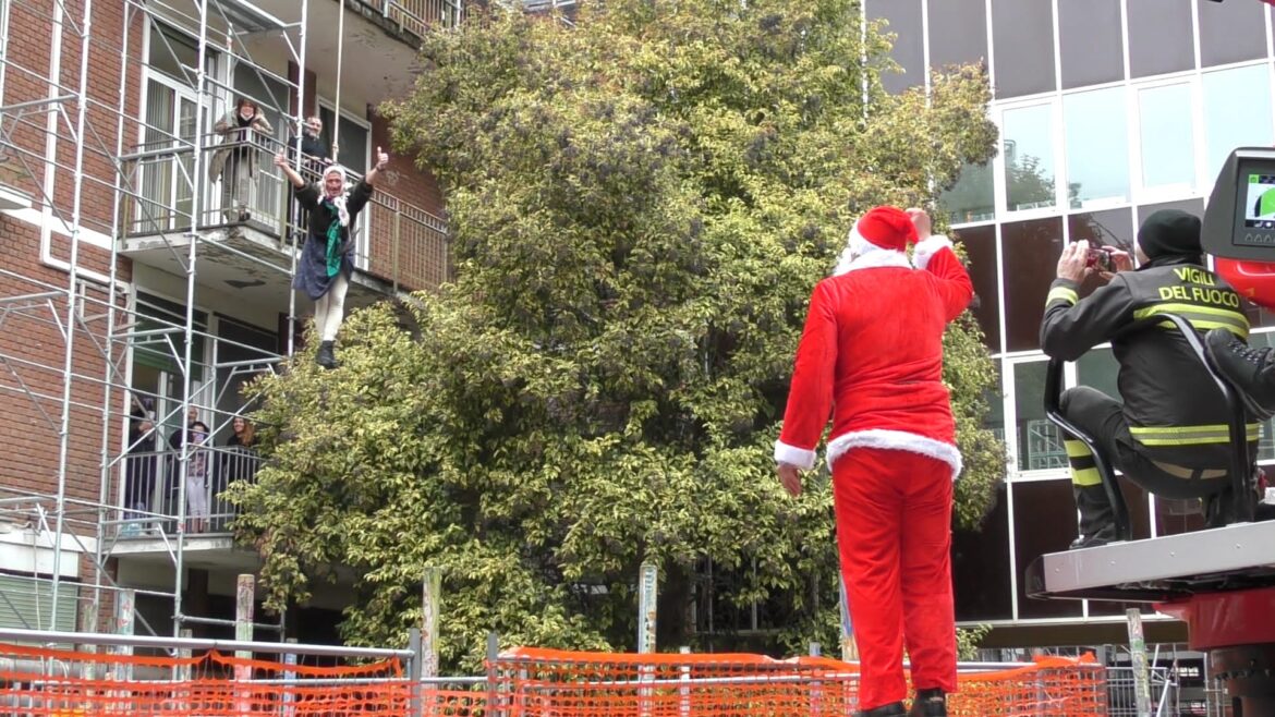 La Befana, accompagnata da Babbo Natale volteggiando con l’ausilio dell’autoscala, ha salutato i piccoli ospiti e le loro famiglie.