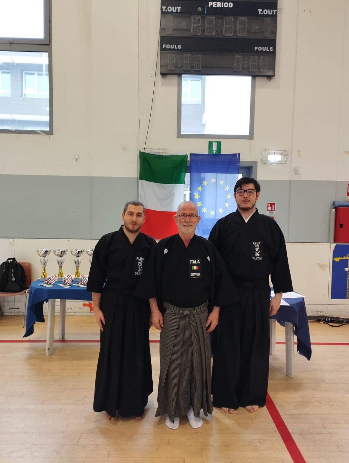 Il maltempo e la fitta nebbia della pianura padana non hanno spaventato la formazione dei giovani samurai delle Langhe. Proprio oggi si sono tenuti i campionati italiani di iaido nella città di Modena e il dojo shinken alba guidato dal Maestro Michele Gravina Godan e arbitro internazionale ha partecipato con due dei suoi giovani atleti: Davide Colombo e Andrea Palazzolo entrambi nella categoria shodan.
