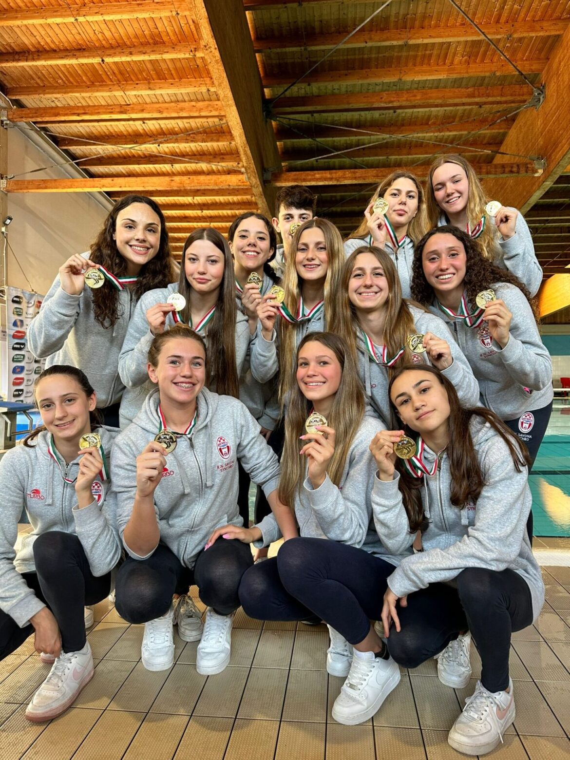 La squadra Junior della BPER Rari Nantes Savona Campione d’Italia è composta da: Beatrice Andina, Flaminia Vernice, Sarah Maria Rizea, Greta Gitto, Melissa Polidoro Baglione, Alessandro Lucci, Alice Maddalena, Giulia Ottonello, Sofia Lucci, Alice Tissone. Irene Contatore, Martina Perata, Virginia Sciullo.