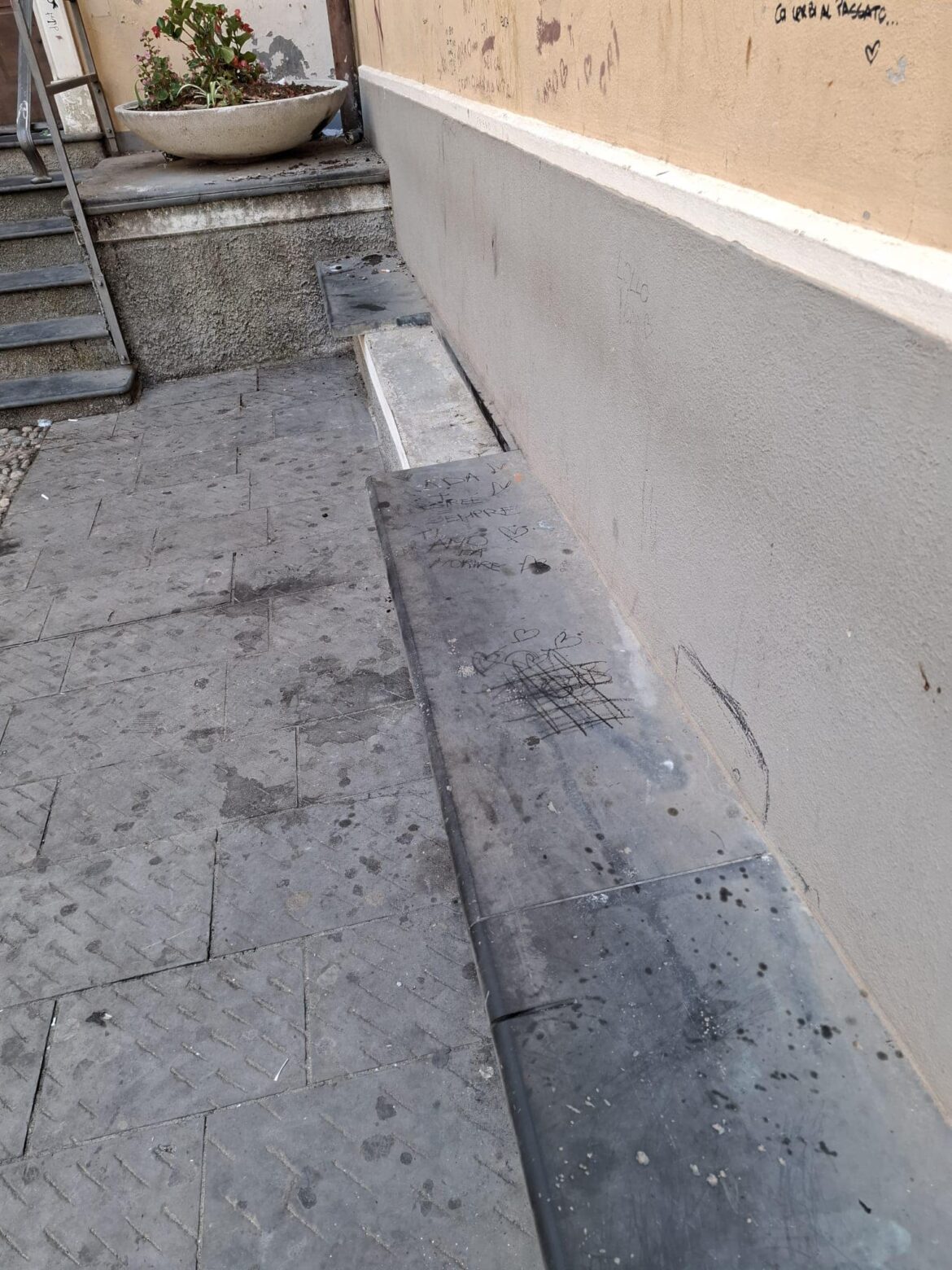 L”area (di proprietà della Diocesi di Albenga-Imperia ma aperta al pubblico passaggio) è in condizioni di forte degrado a causa della presenza di gruppi di ragazzini (in prevalenza extracomunitari) che trascorrono il loro tempo a imbrattare i muri della chiesa e che utilizzano le fioriere per la raccolta dei rifiuti.