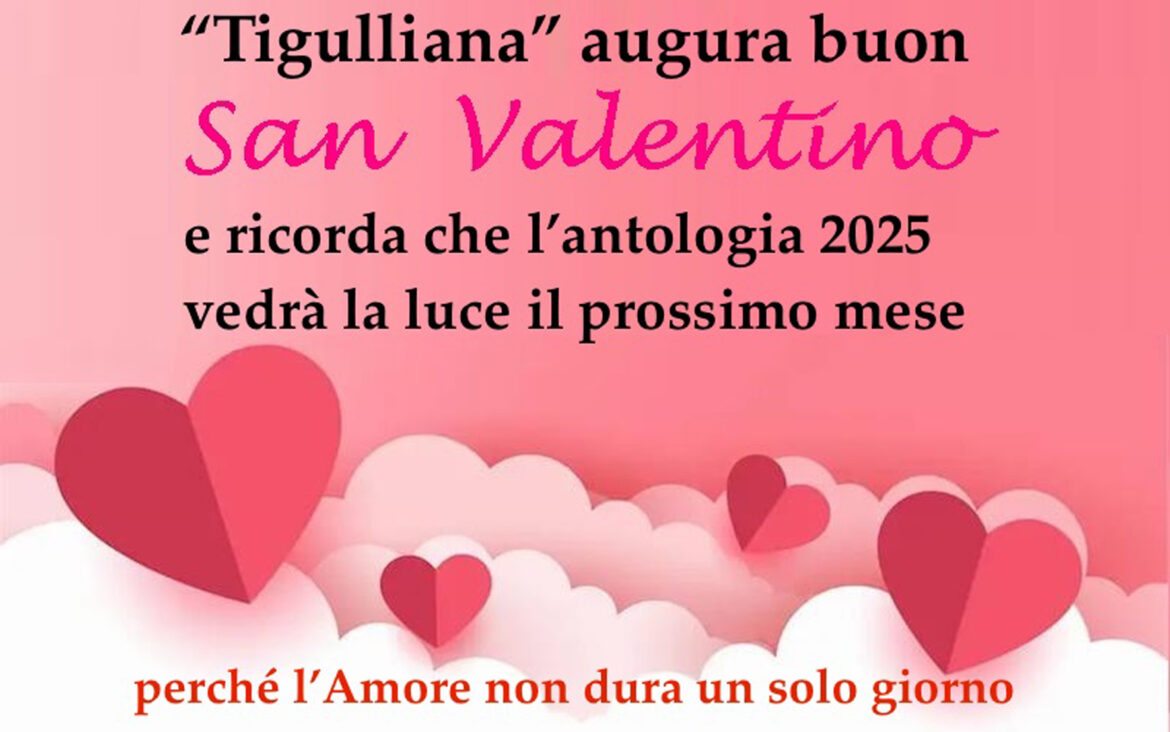 “Parole d’Amore 2025”, la nuova Antologia che giungerà alla ventiquattresima edizione, vedrà ancora una volta scendere in campo una nutrita schiera di Autori della “Tigulliana”. Perché l’Amore, quello vero, esiste ancora, dettato da sentimenti profondamente puri; lo si sente affiorare e sbocciare come un fiore a primavera, nel giorno di San Valentino, ma il suo influsso dura tutto l’anno. Quindi: a presto! E buon San Valentino.