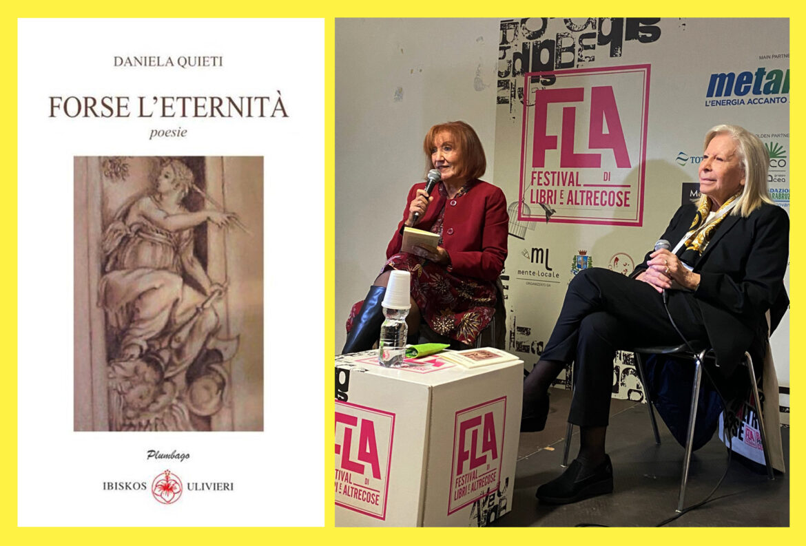 La silloge poetica Forse l’eternità della scrittrice e giornalista Daniela Quieti, pubblicata dalla casa editrice “Ibiskos Ulivieri” lo scorso ottobre 2024, racchiude alcune riflessioni e interrogativi sullo smarrimento, la transitorietà, le contraddizioni e i timori che modellano il vivere del nostro tempo, custode del mutevole avvicendarsi delle stagioni e dei loro accadimenti voluti o imposti. L’impatto con una realtà incerta, caratterizzata da eventi distruttivi e disorientanti come le guerre, le pandemie, le migrazioni, l’intelligenza artificiale e i cambiamenti climatici, è tale da frantumare le sicurezze che si credevano raggiunte e pone nuovi dilemmi sulla ricerca di senso dell’esistere, chiamando a proiettarsi da una storia individuale in quella collettiva. Nell’anelito di riappropriarsi dell’armonia del creato e della sua interconnessione tra terra e cielo, illuminazioni universali di speranza e amore espandono la consapevolezza sia del dolore sia dell’attesa di una rinascita. L’opera Forse l’eternità è stata presentata con grande partecipazione e apprezzamento del pubblico intervenuto, venerdì 8 novembre 2024 presso il nuovo Spazio FLA in Piazza Unione a Pescara, nell’ambito della ventiduesima edizione del FLA – Festival di Libri e Altre cose, il rilevante evento culturale che anima la città adriatica con presentazioni di libri, cinema, teatro e molto altro. Ha brillantemente relazionato e letto brani del testo la scrittrice Vittorina Castellano, che ha evidenziato come i significativi versi della Quieti evochino l’immaginazione, i sentimenti, lo stupore nei confronti della natura circostante esprimendo la consapevolezza dell’esperienza emotiva attraverso un linguaggio strutturato in relazione al suo significato e al ritmo. In un tempo nel quale sembra prevalere il disamore, le poesie presenti nella raccolta restituiscono fiducia all’anima ferita dalle inquietudini originate da una quotidianità spesso ostile.