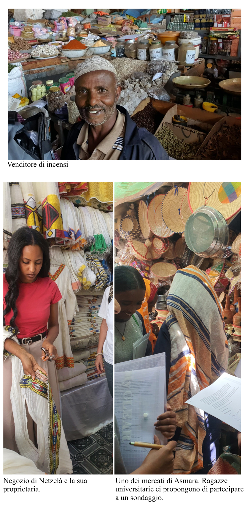 Mentre continuiamo il nostro giro, veniamo accostati da due ragazze con tesserino di riconoscimento dell’università di Asmara: si rivolgono a noi in inglese, ci chiedono se vogliamo rispondere a un questionario approntato dall’università; si tratta di domande a risposta multipla, tese a migliorare, implementare e pubblicizzare l’artigianato locale. Ci prestiamo volentieri, tanto più che l’incontro è piacevole e non ci impegna che per pochi minuti. Quando consegniamo i questionari completati, ci ringraziano calorosamente e ci chiedono di fare un selfie con noi, prima di accomiatarsi con un “ciao” e grandi sorrisi.