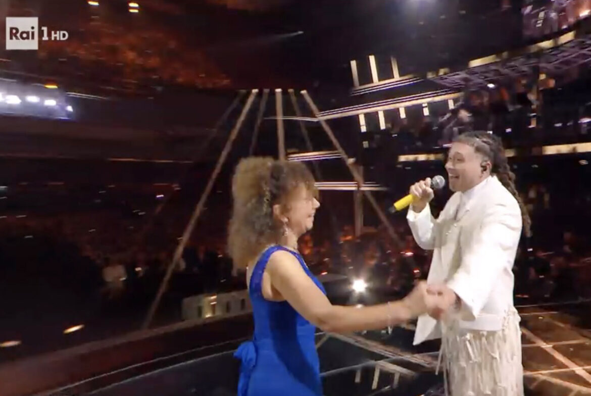 Nella foto: Saif sul palco di Sanremo (con la sua adorata Mamma) la sera della finale del 28 febbraio.